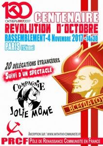 Le 4 novembre 2017, c’est la date du meeting international du centenaire de la Révolution d’Octobre à Paris, un meeting qui rassemblera à l’auditorium des Diaconesses des délégations de partis communistes venues de plusieurs dizaines de pays, à l’initiative du PRCF.